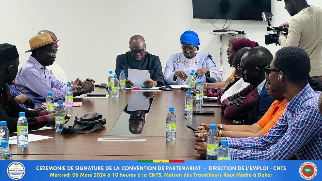 La Confédération nationale des travailleurs du Sénégal (CNTS) et la Direction de l’Emploi ont signé, mercredi 6 mars 2024, une convention de partenariat destinée à promouvoir l’employabilité des jeunes et la création d’emplois durables pour cette tranche de la population.