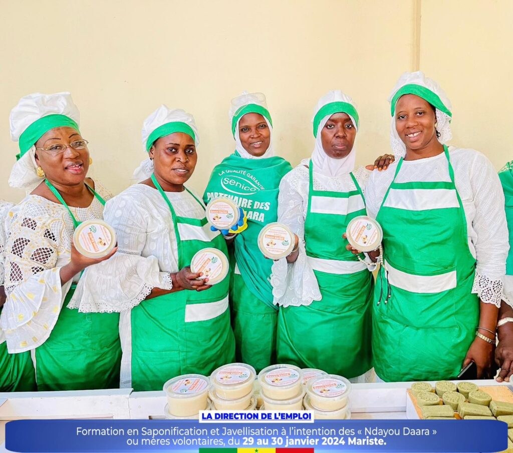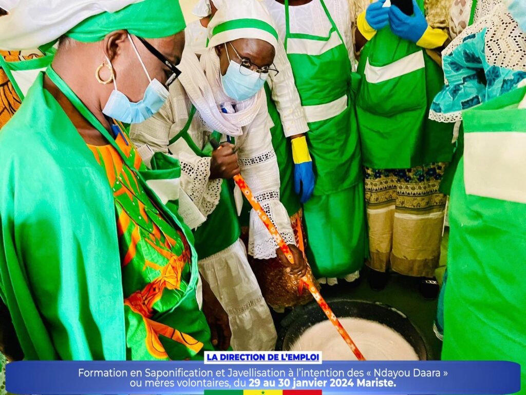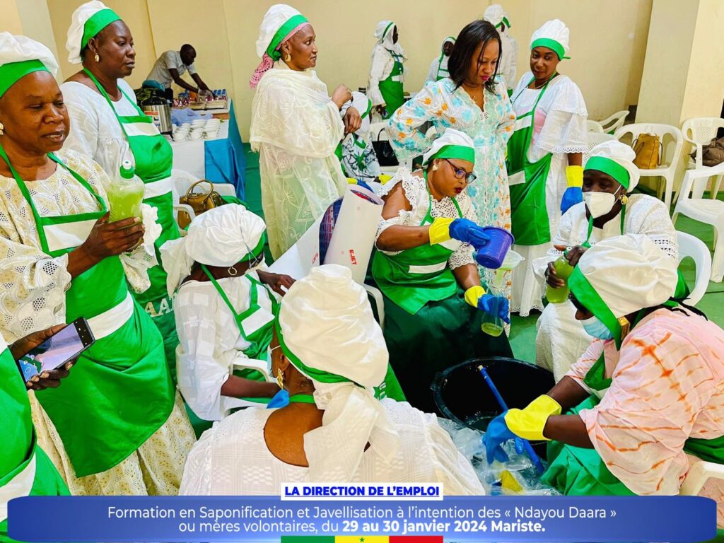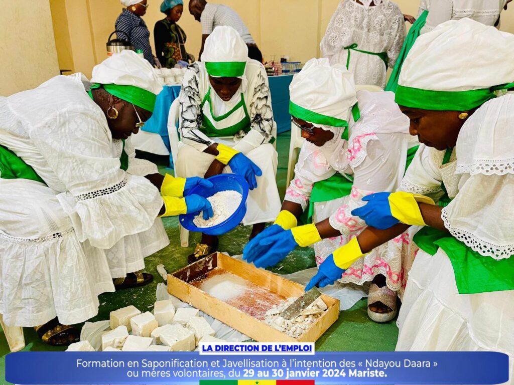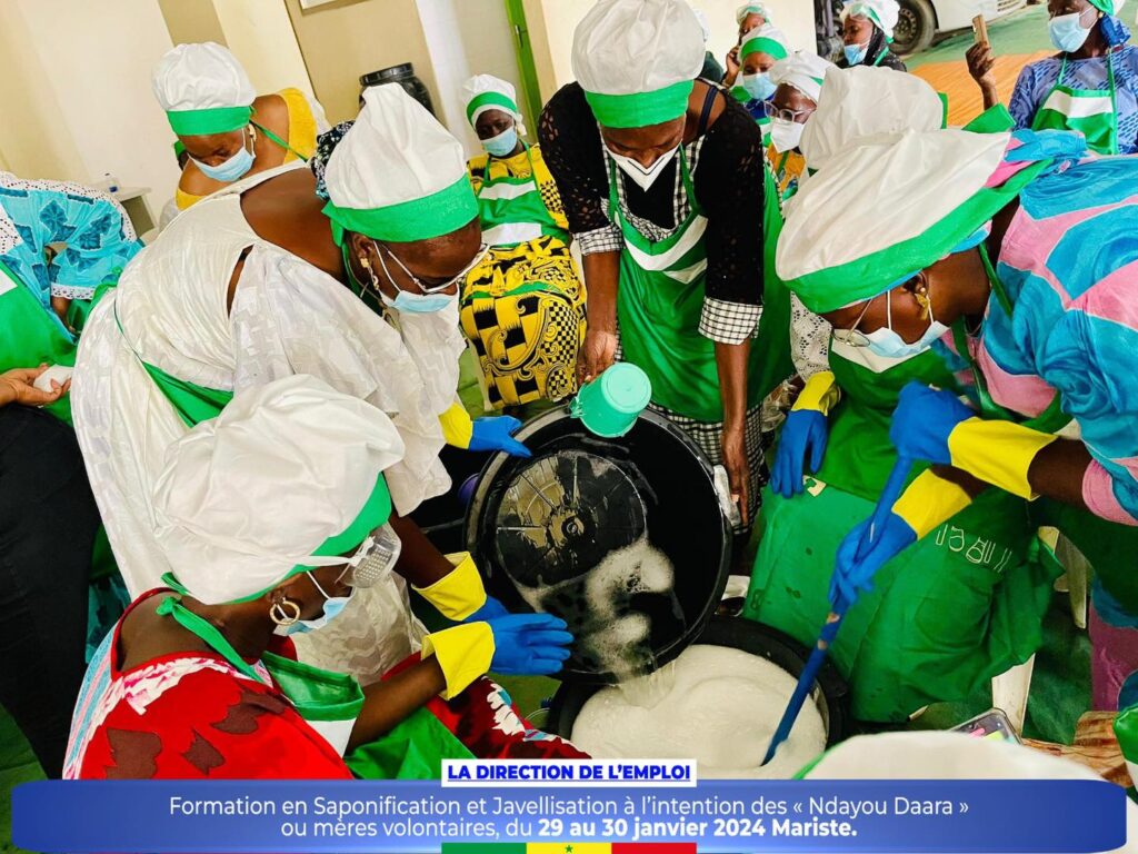 Dans le cadre de la promotion des initiatives communautaires et de l’autonomisation des femmes et des jeunes, la Direction de l’Emploi a organisé un atelier de formation sur la saponification et javellisation à l’intention des « Ndayou Daara »ou mères volontaires de la région de Dakar, du 29 au 30 janvier 2024 Mariste.