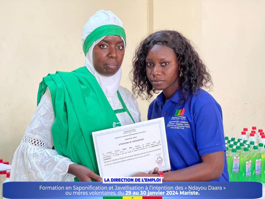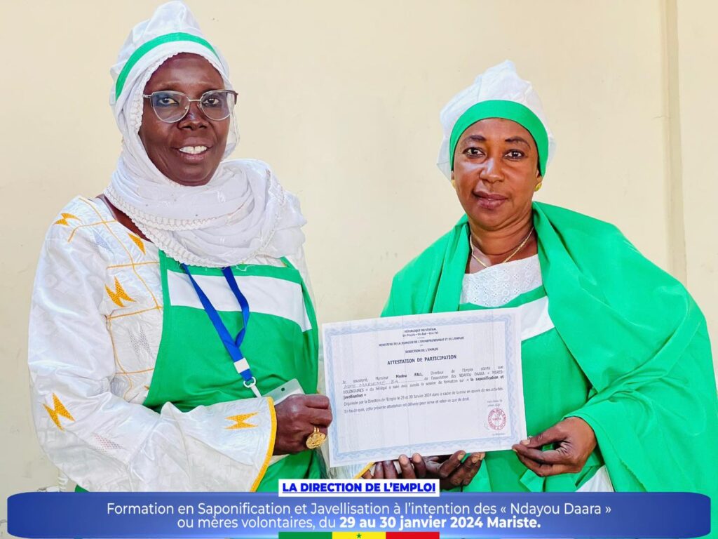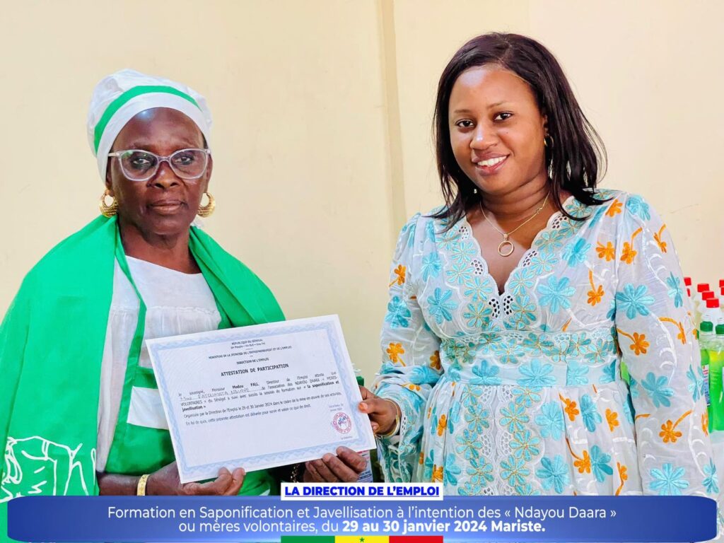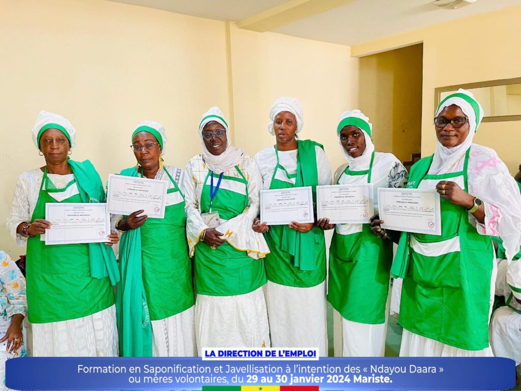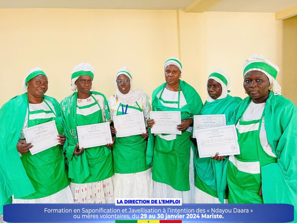 Dans le cadre de la promotion des initiatives communautaires et de l’autonomisation des femmes et des jeunes, la Direction de l’Emploi a organisé un atelier de formation sur la saponification et javellisation à l’intention des « Ndayou Daara »ou mères volontaires de la région de Dakar, du 29 au 30 janvier 2024 Mariste.